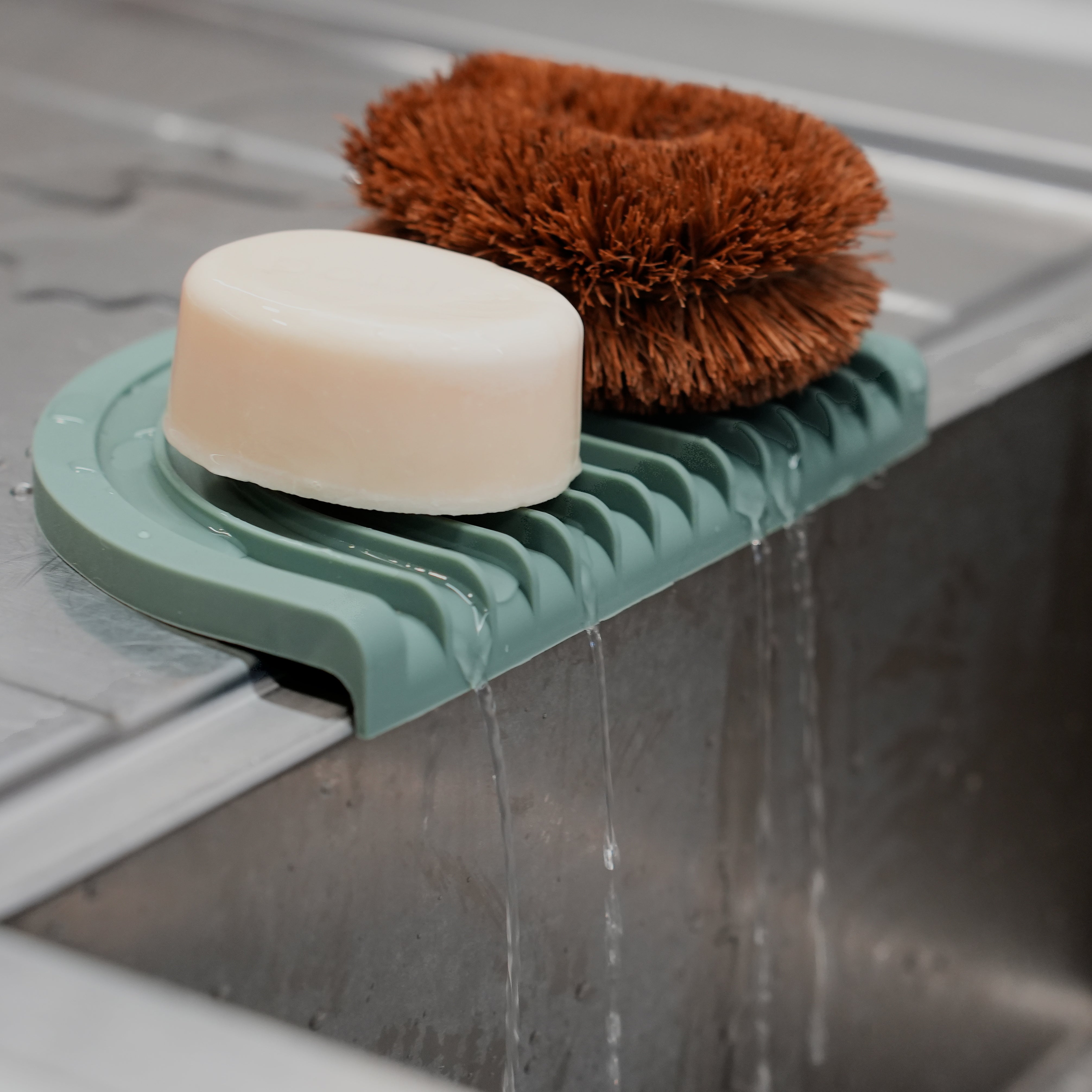 Silikónová odolná podložka, ktorá vám uľahčí život v kúpeľni aj v kuchyni. S praktickými drážkami a spádovaním na jednej strane, takže prebytočná voda automaticky odtečie a mydlo alebo špongia sa môžu rýchlo vysušiť.