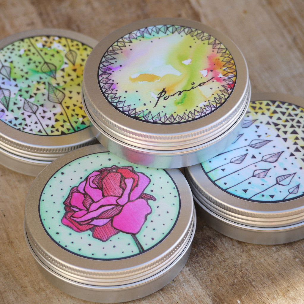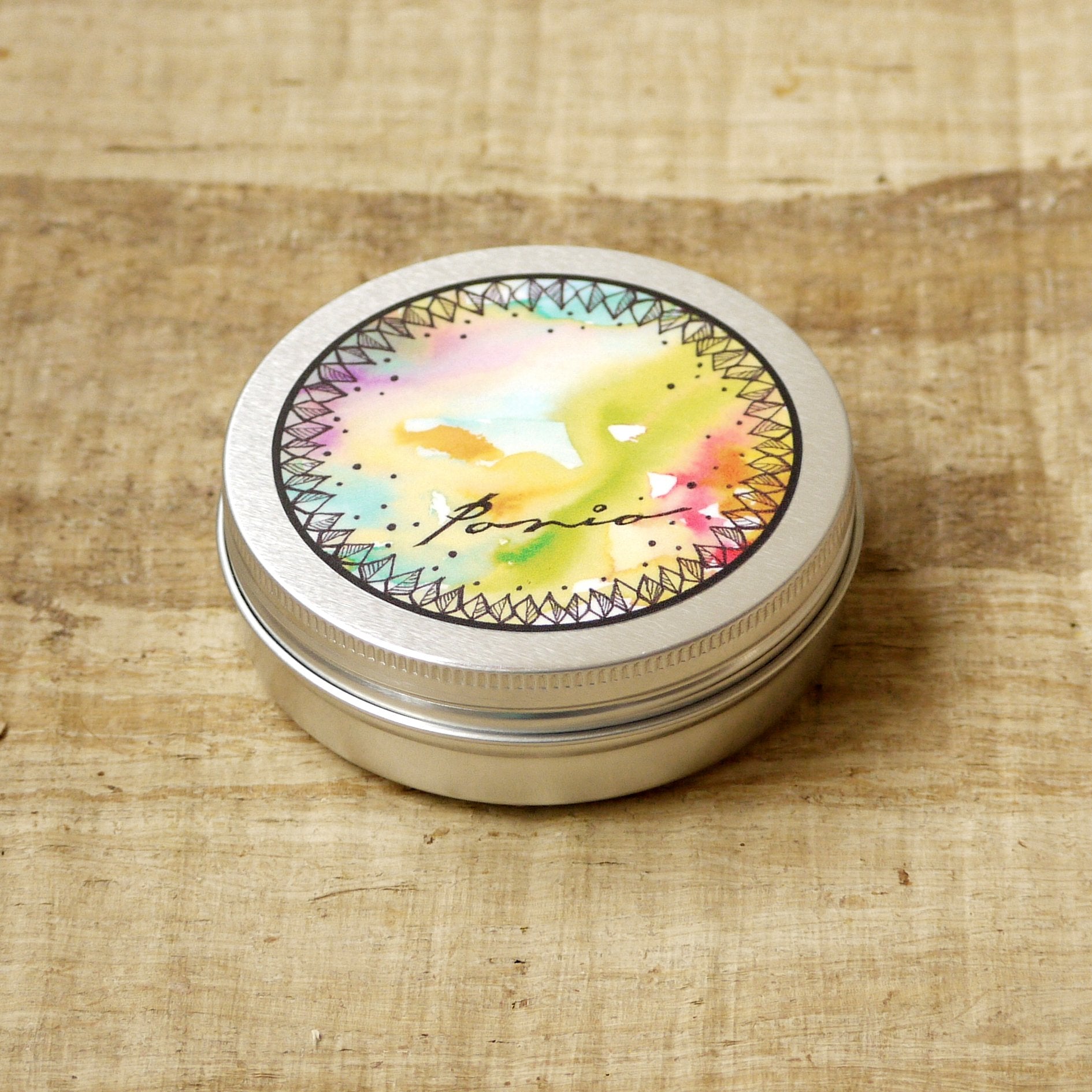 Portable for Ponio things - aluminum can with a diameter of 8 cm. With author's print by Lenka Cibulkova. The lower portable is an ideal hiding place for a small massage cube, shampoos (30g and 60g versions), it can also hold soap cut in half. The lid is twisted. Handle the Carrier with emotion, do not use brute force. If possible, allow the soaked items on the road to dry before closing the Carrying Case.