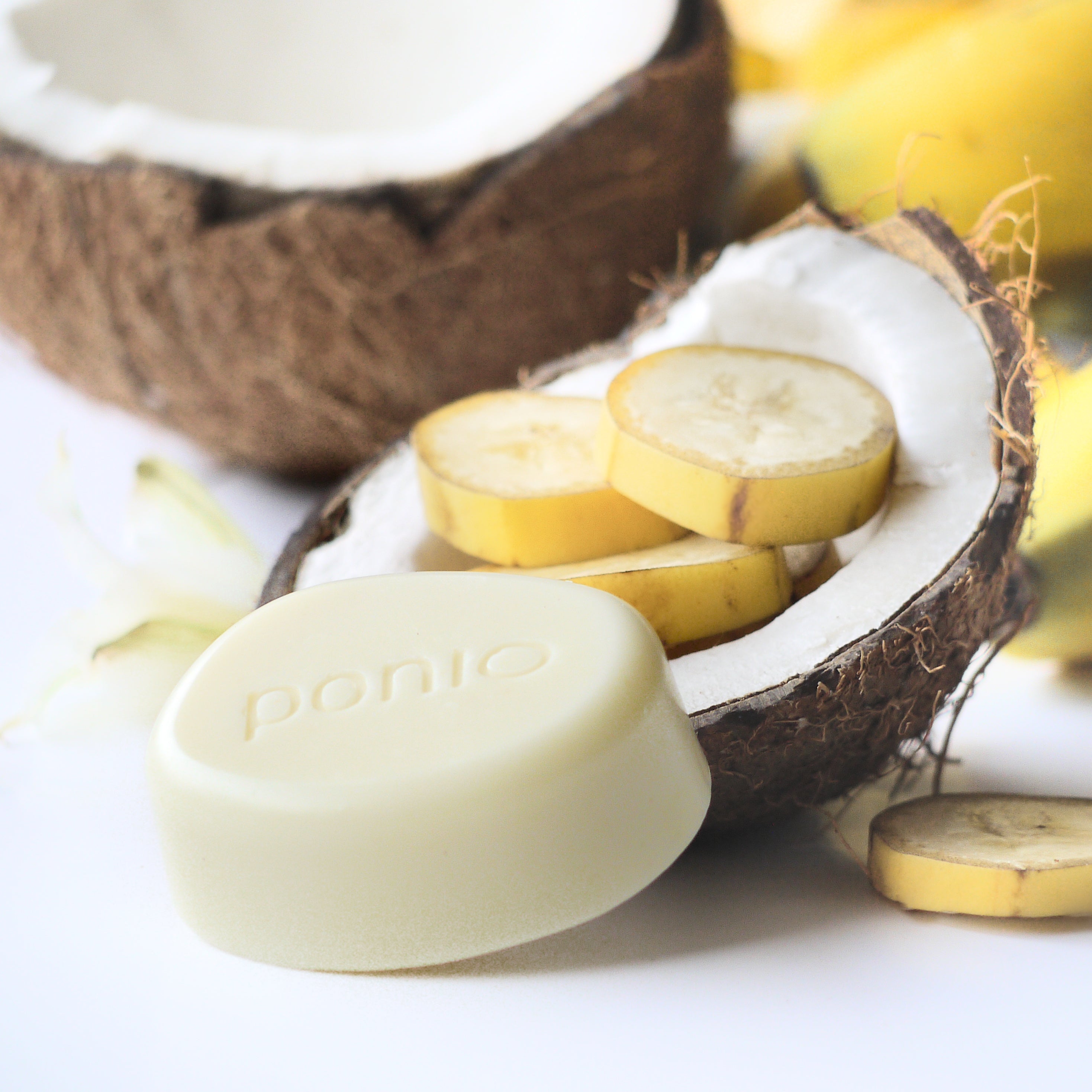 Tuhý kondicionér s vôňou banánu a kokosu - jednoducho ho namočte, pošúchajte v rukách, vzniknutú emulziu rovnomerne votrite do vlasov od končekov ku korienkom a opláchnite. Stačí malé množstvo a vlasy ostanú krásne rozčesateľné, lesklé a ošetrené.
