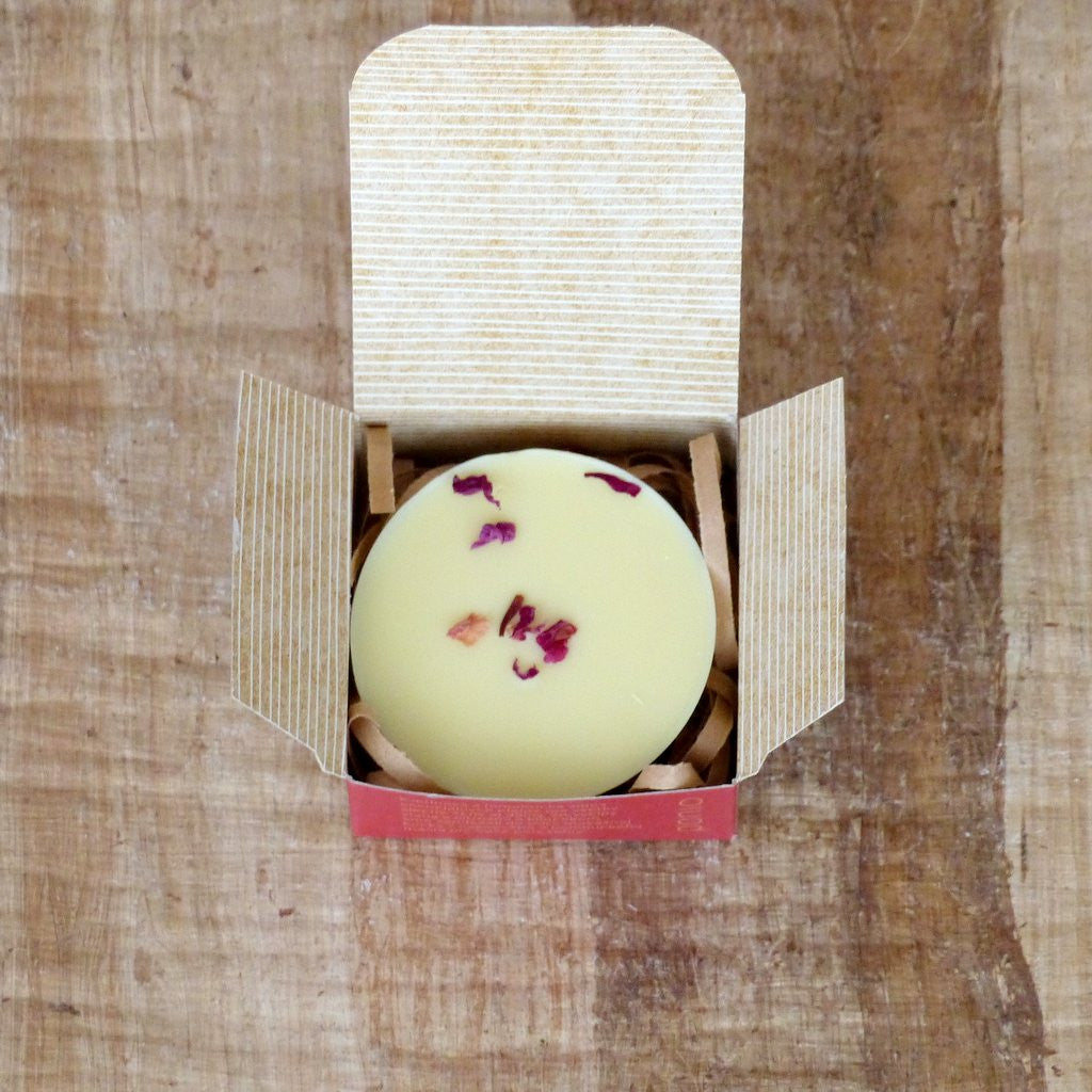 Masážna kocka so zmesou silíc, ktorá je kvetinovo-sladká, s náznakom citrusov a korenia. Pre romantické aj hravé povahy. Na povrchu má pár lupeňov pivonky - odporúčam pred použitím odstrániť.