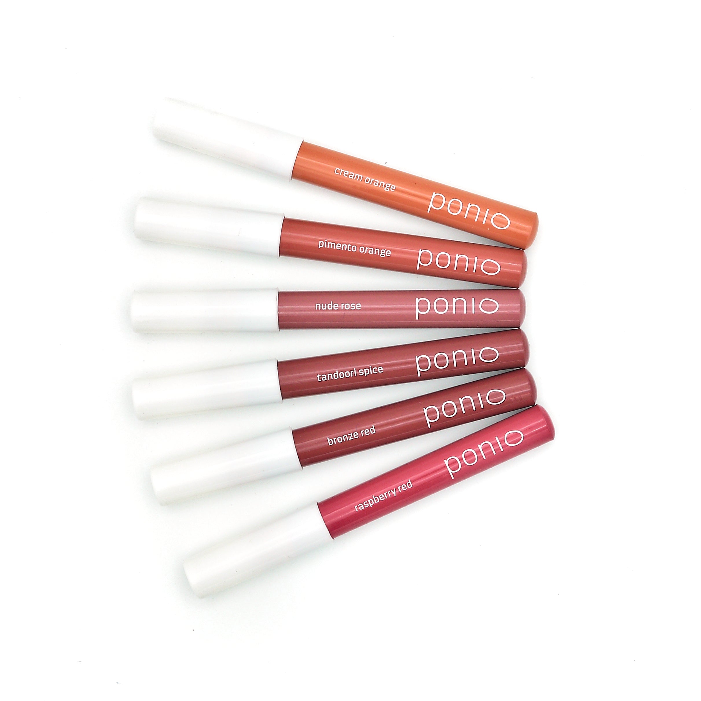**  raspberry red, cream orange, nude rose